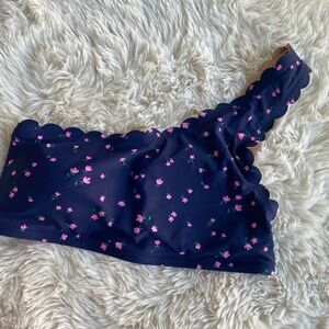 J Crew Antique Navy Lotus Floral Print One Strap Scalloped Bikini Top Medium