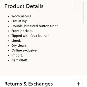 100% wool and polyester lining.