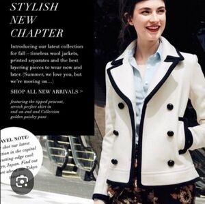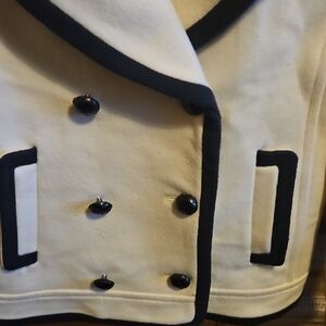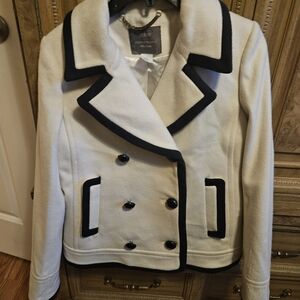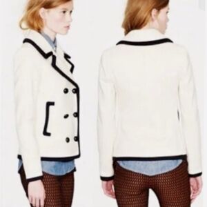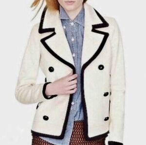 J. Crew double-breasted pea coat. Antique White with bold black trim. Stylish and timeless design.