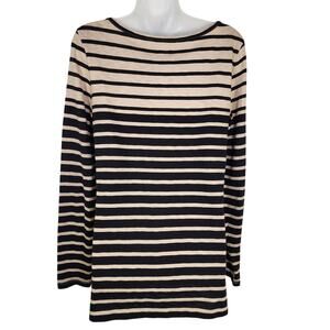 J. Crew Artist T Shirt Top Womens Small Black Tan Knit Striped Pullover Cotton