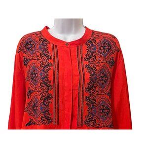 J. Crew Asian Inspired Paisley Henley Tunic Top Size XL Red Long Sleeve