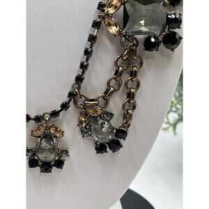 J. Crew Asymmetrical Drape Topaz Black Gray Rhinestone Necklace