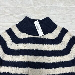 J. Crew Azra Cable Pullover Striped Navy NWT Size Small.