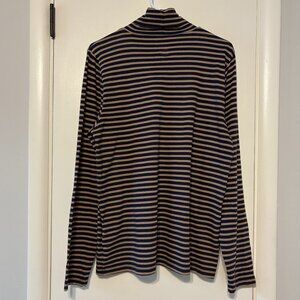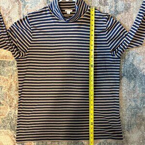 J. Crew #BB750 Women's Navy/Tan Stripe Printed Tissue Turtleneck Shirt Top XL