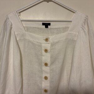 J. Crew #BG249 Women's Linen Square-Neck Button-Front Shirt Top Blouse L White