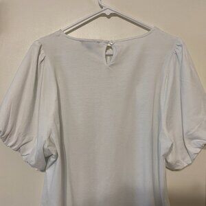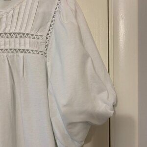A gorgeous "Lace-Trim Puff-Sleeve T-Shirt" top/blouse from J. Crew (Spring 2023 collection) that is in EXCELLENT condition - it doesn't even look worn! Size is a women's XL. Material is 100% cotton.