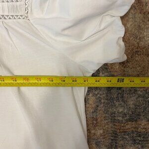 J. Crew #BP030 Women's S/S White Lace-Trim Puff-Sleeve Tee Shirt Top Blouse XL