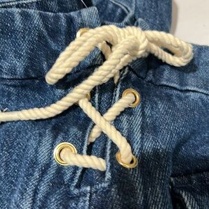 This new, nautically inspired style comes with rope tie details at the back, plus an easy, elastic waistband for an always-comfortable fit. It's crafted in a drapey new fabric, which has the refined look of your favorite denim without any of the stiffness.