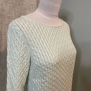 J Crew Baby Blue Crewneck Cable Detail Sweater Medium Cotton Waffle