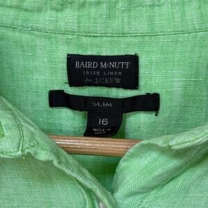 J. Crew Baird McNutt Irish Linen Green Button Slim Classic 16 Shirt MSRP $139