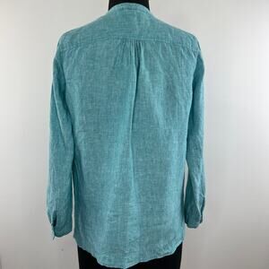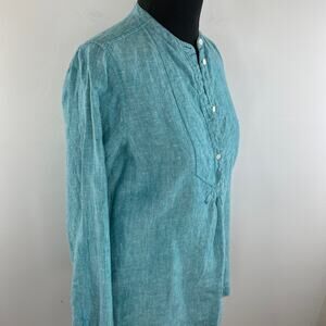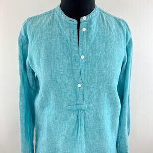 J Crew Baird McNutt Irish Linen Turquoise Blue Long Sleeves Popover Top Size 0