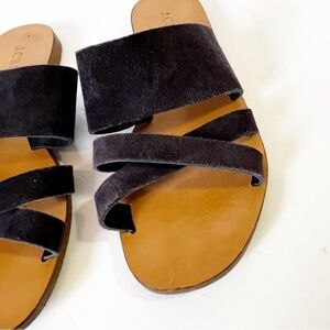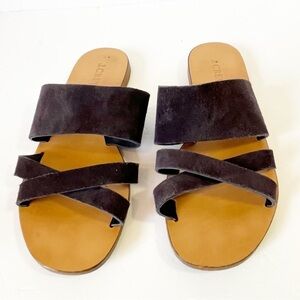J. Crew Bali Navy Blue Suede Slide on Sandals Size 7 Leather Sole Made in Italy