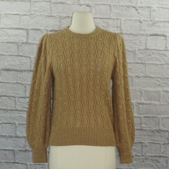 J. Crew Balloon Bishop Sleeve Alpaca Wool Cable Knit Sweater BD619