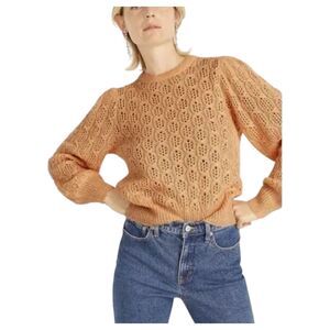 J. Crew Balloon Sleeve Open Knit Sweater Camel Beige Tan Size Large NEW with Tags