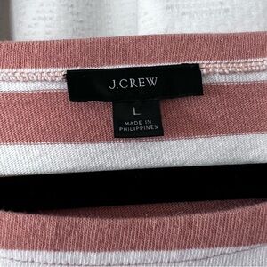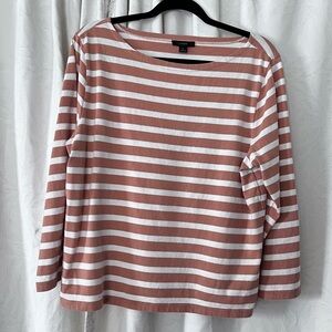 J Crew Basic Boat Neck Preppy Stripe 3/4 Cotton Tee in Tan and White size Large
