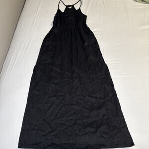 J Crew Beach Cover Up Maxi Dress 100% Linen Black Elastic Waist Womens Small EUC