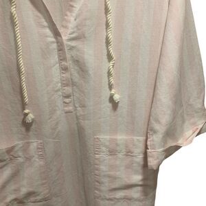 J Crew Beach Womens Pastel Pink Striped Linen Blend Tunic Coverup Coquette Girly
