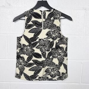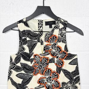 JCrew cream sleeveless top in size 0 showcases a black floral print with orange bead embellishments for a standout look.