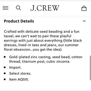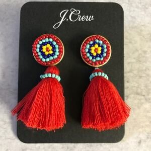 J. Crew Beaded Tassel Stud Earrings Authentic Red NEW