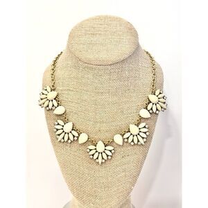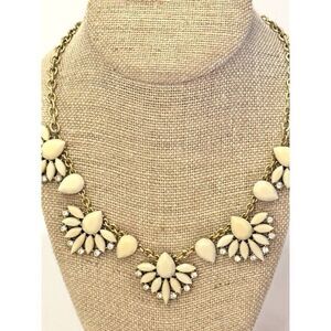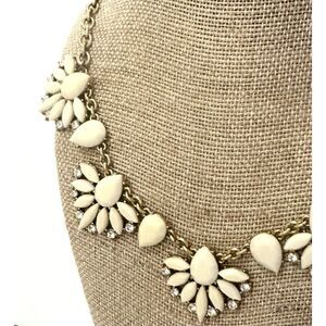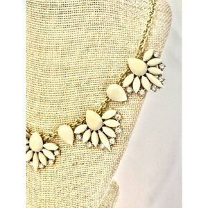 Beautiful statement necklace from J. Crew in an off-white floral design with golden chain. Excellent condition, measures 17 inches and can extend to 21. See photos for detail.