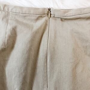 J Crew Beige Pencil Skirt Size 8. J Crew beige pencil skirt, no slit, hidden zipper in the back. There are 2 defects in the back, one is a natural fabric defect, and the other one is small stains, both at the top. (please see images)