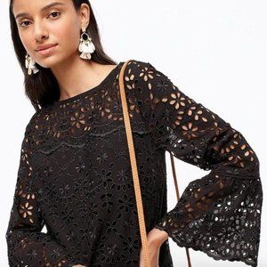 J. Crew Black Eyelet Dress Bell sleeve Embroidered Eyelet Dress NWT
