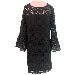 J. Crew Bell sleeve Embroidered Eyelet Dress in Black Size 6 NWT