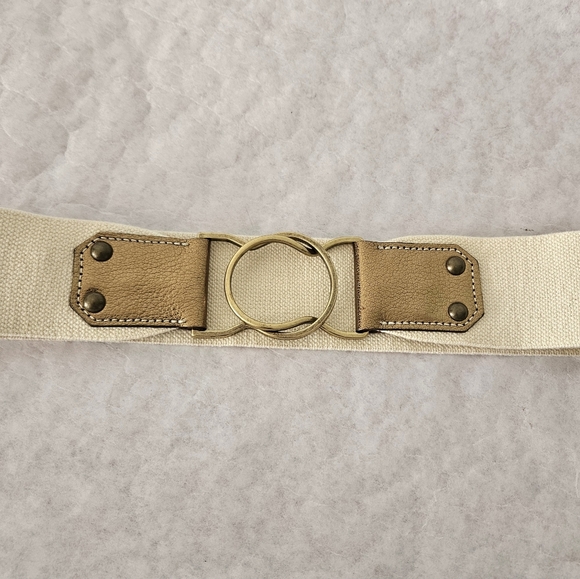 J. Crew Belt Neutral Canvas Wide Belt Gold Leather
