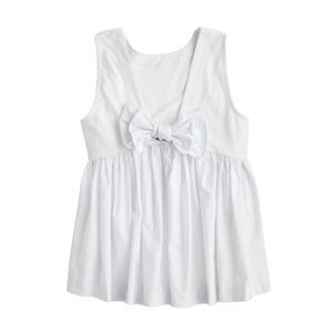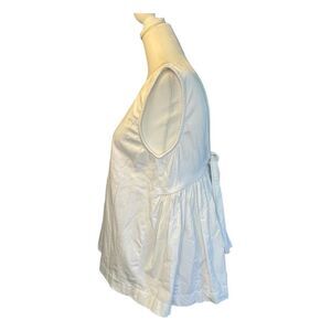 J. Crew Bow Tie Back Blouse in White Cotton Knit. It is a Pleated Swing Top with a High Neck in front and a Deep V in back with a beautiful Bow Tie on the Poplin Peplum Pleated Back side. It is Sleeveless and a Pull-Over Style. Pair it with everything from a jeans and sneakers to a skirt and heels. It would make a great Christmas Hanukkah Valentine’s Day Birthday or any Holiday gift!