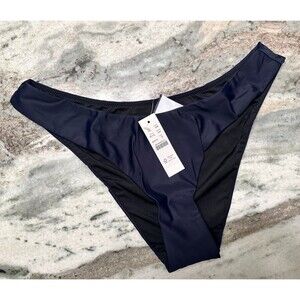 J Crew Bikini Bottom Womens Medium Navy Blue Curved Waist Cheeky High Legs Lined