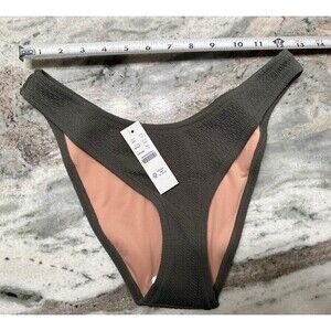 J Crew Bikini Bottom Womens Small Green Textured Curved Waist Cheeky High Legs Brand New with Tags
