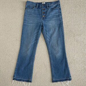J Crew Billie Demi Boot Crop Jeans 29 Frayed Hem Button Fly Blue Redwood Wash
