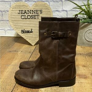J. Crew Billie Short Womens Size 7 Brown Leather Mid Calf Buckle Boots