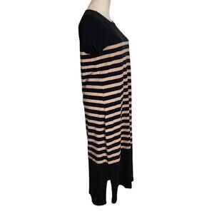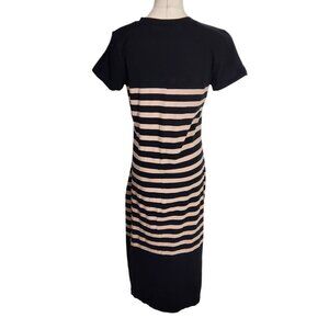 J. Crew Black & Beige Striped Midi Dress Short Sleeve Cotton Womens Size M