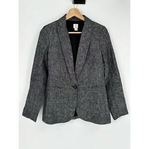 J. Crew Black Chambray Linen Blazer Gray Size 0 One Button