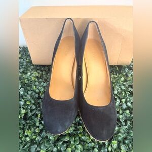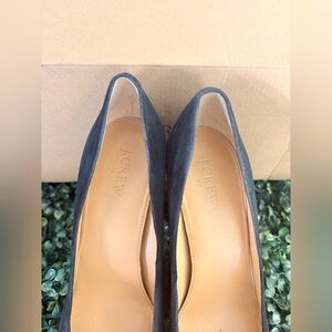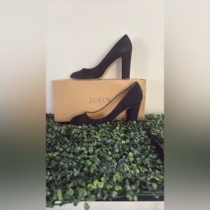 These J. Crew black heels feature a timeless design with a rounded toe and a sturdy block heel, offering both style and comfort. Crafted from a suede-like material, they are perfect for both office wear and formal occasions. The minimalist design ensures versatility, making them a staple in any wardrobe.