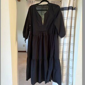 J Crew Black Cotton PoplinTiered Midi Dress/Cover Up.