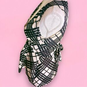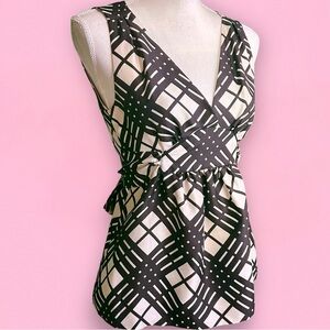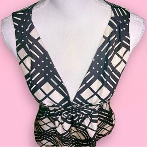 J. Crew Black & Cream Picnic Plaid A-Line Flounce Silk Top With Tie Back Size 2