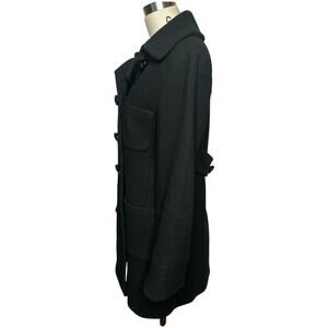 This beautiful J. Crew Black Double Breasted Wool Coat Jacket is in good used condition, with no stains or rips. It's a timeless piece that will keep you warm and stylish! The coat features a classic double-breasted design and four functional front pockets.