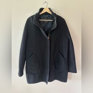 J Crew Black Double Cloth Cocoon Patch Pocket Peacoat Wool Blend Coat Size 8