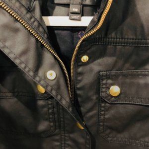 J. Crew Downtown Field Jacket in black, size PXS/ XSP (petite extra-small), waxed cotton fabric. Re-poshing because I can't fit in it post-baby... excellent condition, buttons show some wear (see final picture). Help me find this dress-up-or-dress-down jacket a new home 🤣