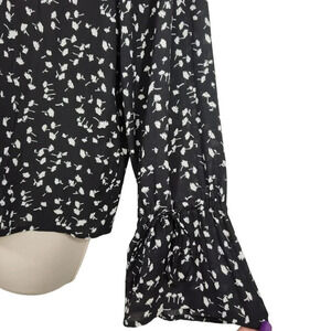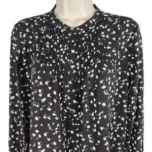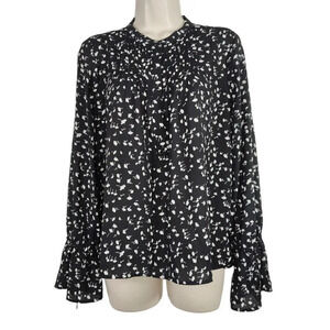 J Crew Black Floral Popover Top Pintuck Women Size S Long Bell Sleeve H8309