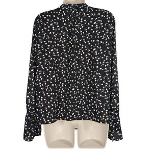 J Crew Black Floral Pintuck Popover Top with Long Bell Sleeve