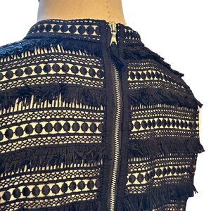 J Crew Black Fringe Sheath Dress, Black With Beige Lining, Size 2
