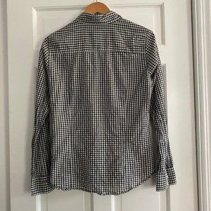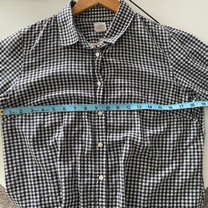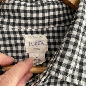 J Crew Black Gingham Perfect Shirt sz M, great used condition. Button front, bust darts. 99% Cotton, 1% Spandex blend.