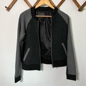 J. Crew Black Houndstooth Wool Bomber Jacket Size 4 Style B1034