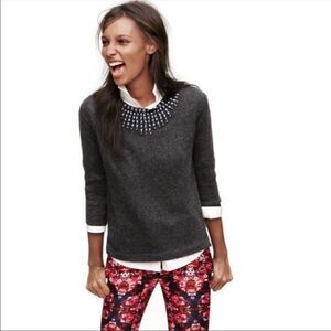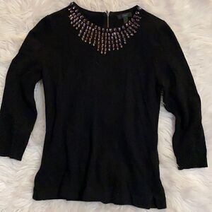 J. Crew | Black Jeweled Starburst Pullover Crew Neck Wool Blend Sweater | S