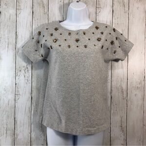 J Crew Black Label Jeweled Dolman Top Gray Extra Small