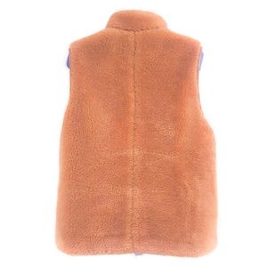 J Crew Black Label Plush Fleece Excursion Vest in Golden Hickory Color. Camel Warm Tan. Faux Fur. Full Zip Front. Gold Toned YKK Hardware. Standing Collar. 3 Pockets with Security Zippers. Luxuriously Satiny Lining. Machine Wash. Tagged Size M. 8-10. Actual vest pic's color is incorrect due to the sun. Look at stock photo for true color.