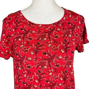 J. Crew Black Label Sz M Red Bandana Print Short Sleeve Cotton Crew Neck T-Shirt. Red background with tan and black floral print